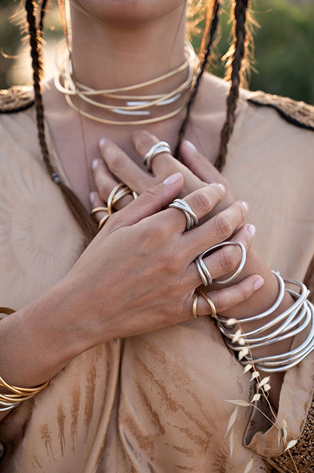 A bold statement in pure simplicity. This set includes one 3mm bangle, one 4mm bangle, and two 5mm bangles—each handcrafted in sterling silver with a fluid, organic curve. Wear them stacked for a striking layered look or individually for understated elegance. Perfect for those who appreciate modern minimalism and timeless design.